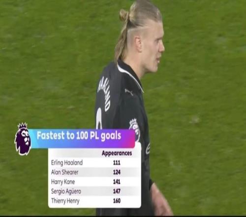 撰稿/寒冰经历了连续3场的“进球荒”之后,哈兰德终于刷新了英超进球效率纪录。富勒姆的克拉文农庄球场,见证了英超史上最快达成100球的传奇时刻。年仅25岁的哈兰德仅用111场就在英超100球,打破了希勒(124场)的纪录,也领先凯恩(141场)、阿圭罗(147场)、亨利(160场)、萨拉赫(162场)等巨星,空前的门前效率已载入英超史册。